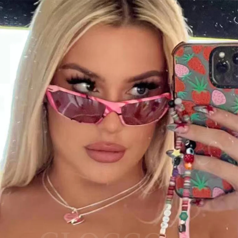 Trend Steampunk Sunglasses Rectangle Y2k Women Men Luxury Sun Glasses Driving Eyeglasses Futuristic Shades Pink Glasses